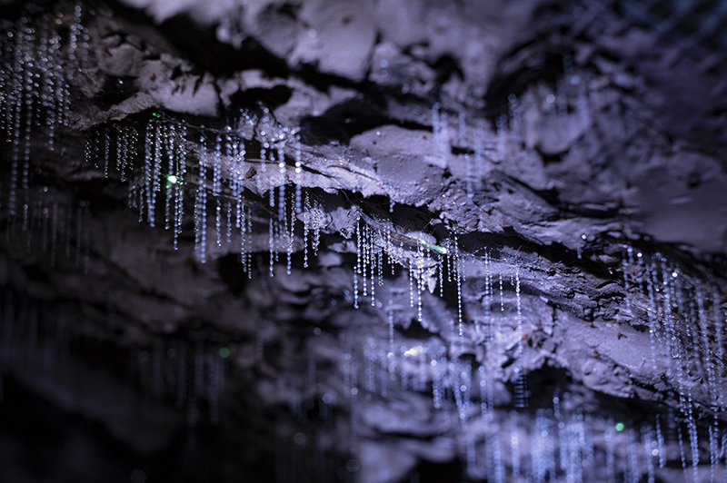 2022年11月現在、約350匹のグローワーム(オーストラリア産のヒカリキノコバエの幼虫)が、暗い展示室のなかで発光しています。