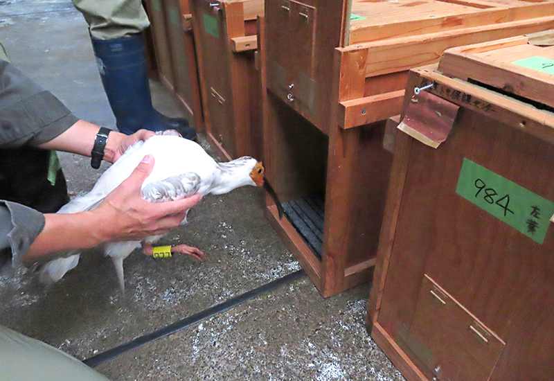 今回は、2025年に当園で誕生した6羽を含む9羽を佐渡トキ保護センターへ移動し、新たな3羽を受け入れました。移動した幼鳥6羽は、今後、環境省が策定する野生復帰に向けた計画にもとづき、放鳥候補となる予定です。