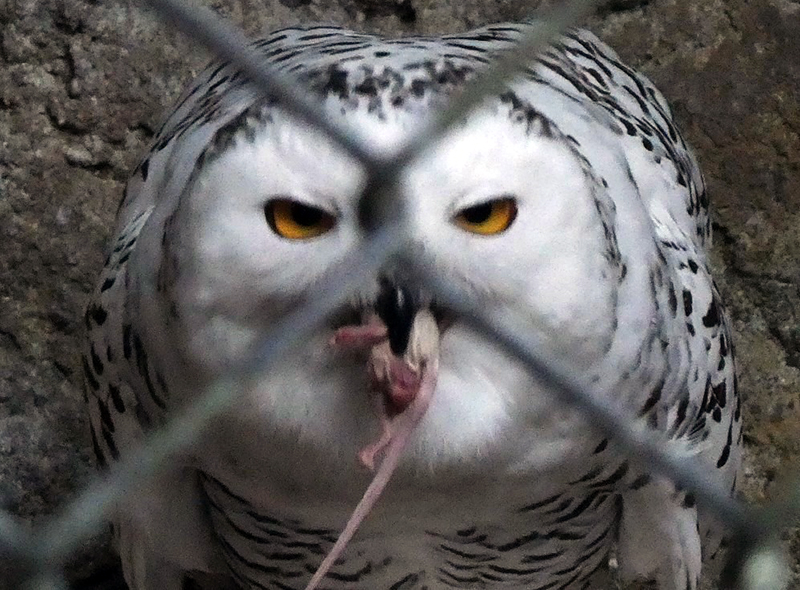 えさ用のネズミを採食するシロフクロウ