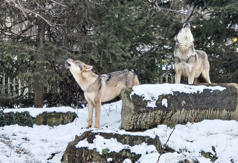そして、1月29日にはスイに発情出血が確認され、繁殖期が本格的に始まったことがあきらかになりました。また、ふだんはほとんど遠吠えをしないスイが、2月9日ごろから頻繁に遠吠えをするようになり、それにカヨランも呼応していっしょに遠吠えを始めました。