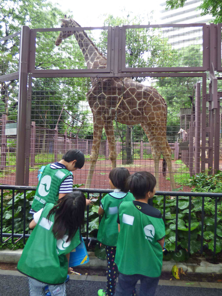 キリンを観察するこどもたち