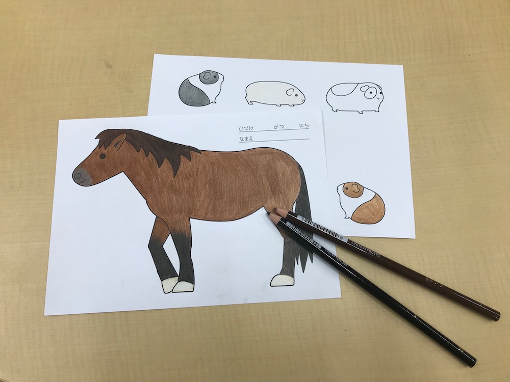子ども動物園すてっぷでくらしている動物たちが、かわいい「ぬりえ」になりました。「ふたば牧場」や「小さな動物たちのおうち」でじっくり観察した動物たちを、色鉛筆で素敵にぬってあげましょう。ぬった絵はおみやげとしてお持ち帰りいただけます。