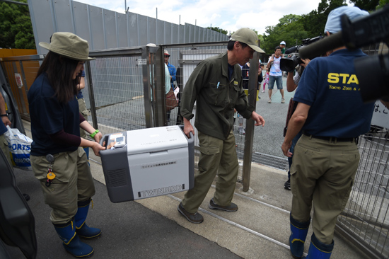 卵の運搬にあたっては、採卵後、衝撃の影響や温度変化が少ない容器に入れ、乗鞍岳の下まで運んで保温庫に収め、その後上野動物園に出発しました。上野動物園には午前中に到着。