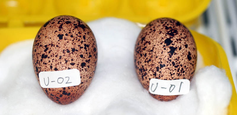上野動物園で生まれ、2020年6月3日に中央アルプスに移送した卵。産卵日は左が5月29日、右は6月2日