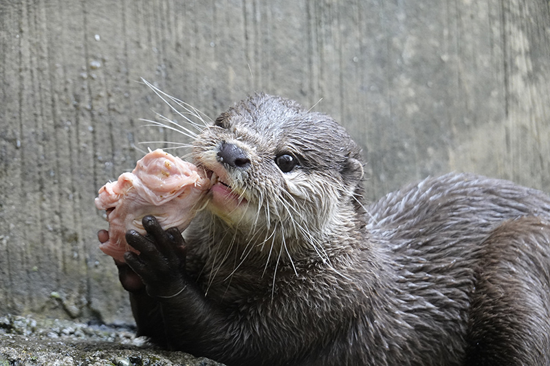 コツメカワウソの食事風景