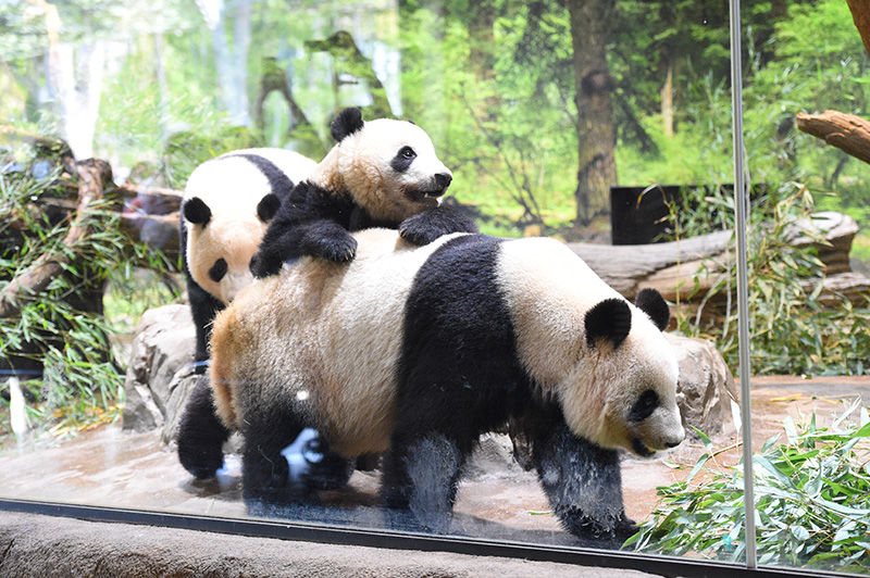 お知らせしているとおり、ジャイアントパンダ「シャオシャオ」と「レイレイ」の成長に合わせ、母親の「シンシン」から離れてくらす時間を徐々に長くし、親離れできるよう支援しています。