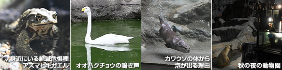 動画公開!身近にいる絶滅危惧種アズマヒキガエル、オオハクチョウの鳴き声、カワウソの体から泡が出る理由、秋の夜の動物園