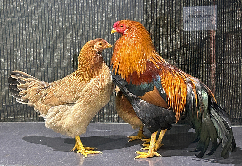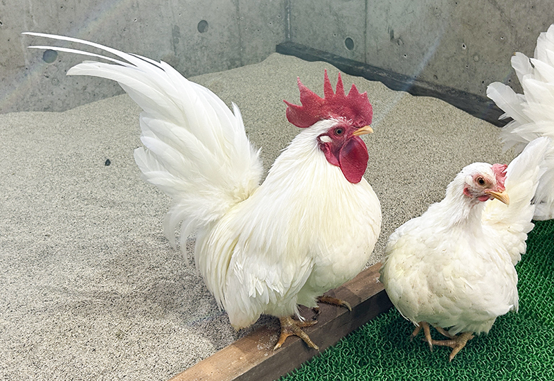 同じニワトリでも、昔からの品種改良によって羽の色や大きさ、姿かたちが異なります。ぜひ2つの品種をじっくりご覧ください!
