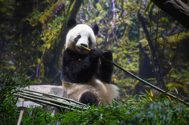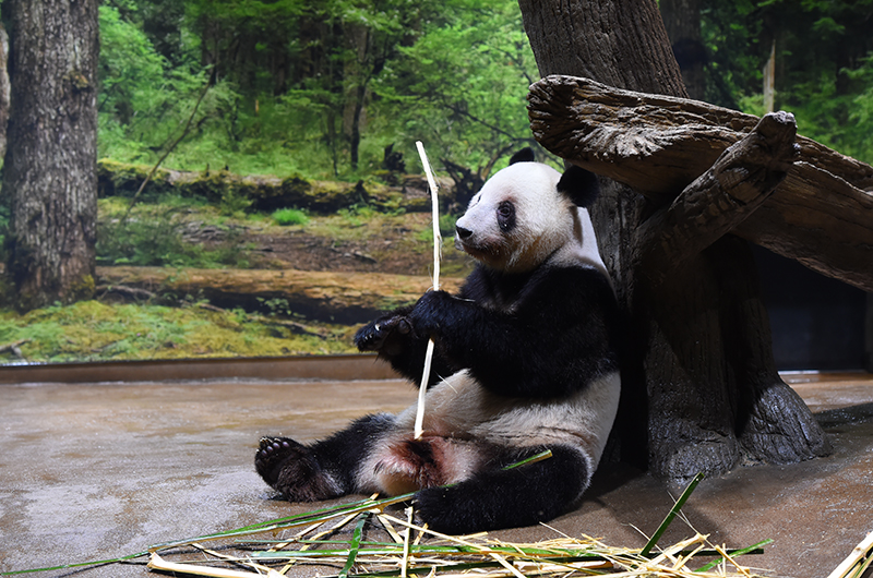 えさとしてモウソウチク、シノダケ、マダケなどのタケを中心に与えており、副食であるパンダ団子、ニンジン、リンゴもそれぞれ必要に応じて与えています。