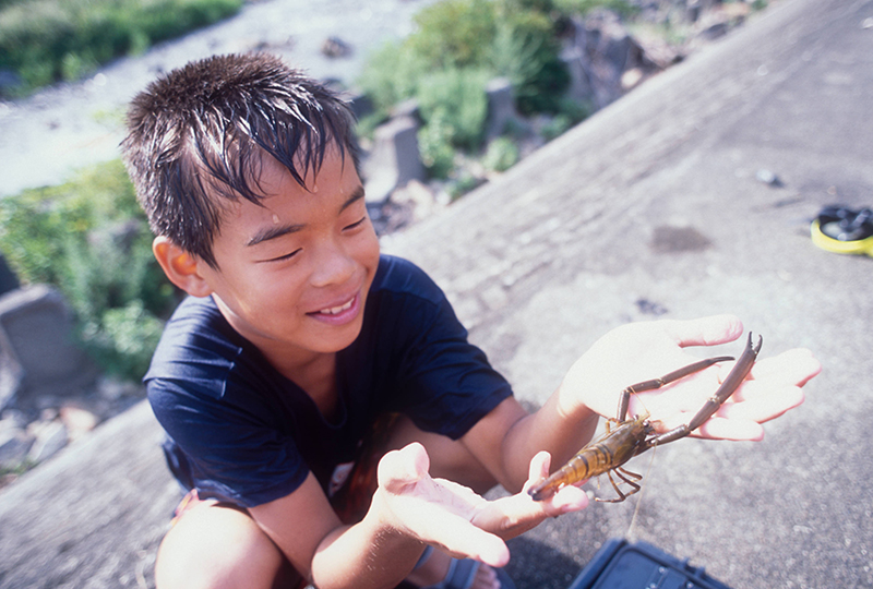 青空を映して流れる川面には、セミの鳴き声をかき消すような笑い声が良く似合います。水しぶきを上げながら自然の中で遊ぶ川ガキの姿は、未来へ残したい大切な日本の原風景。川ガキを絶滅させないためにも、身近な水辺環境に関心を向けて欲しいと思っています。