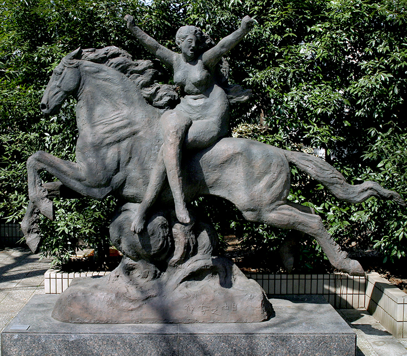 文化園にはじつはたくさんの馬がいるんです。軍人の騎馬像から平和を祈る女神の像へ、北村西望の馬彫刻を楽しみます。彫刻園学芸員がご案内します。