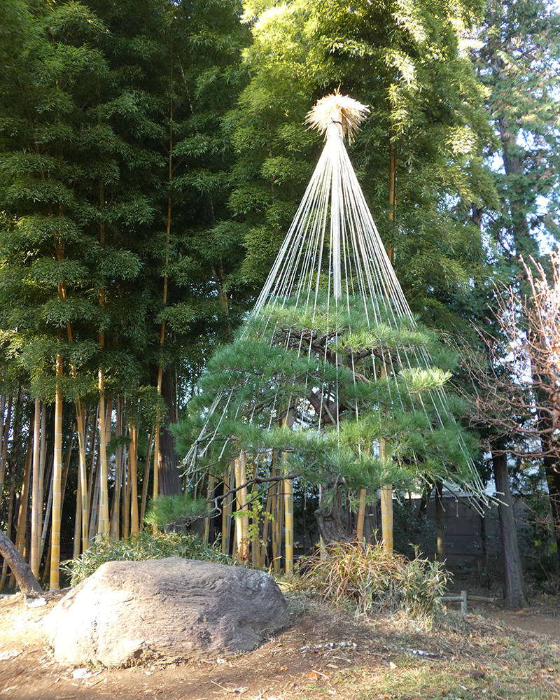 お正月飾りと雪吊、霜除けなどの日本の伝統的な冬支度をご紹介します。
