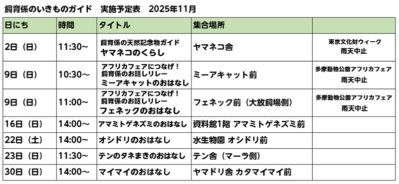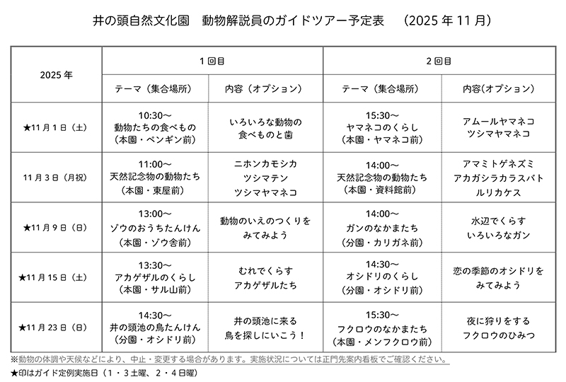 (2025年10月31日:「動物解説員のガイドツアー」の詳細を追記)
