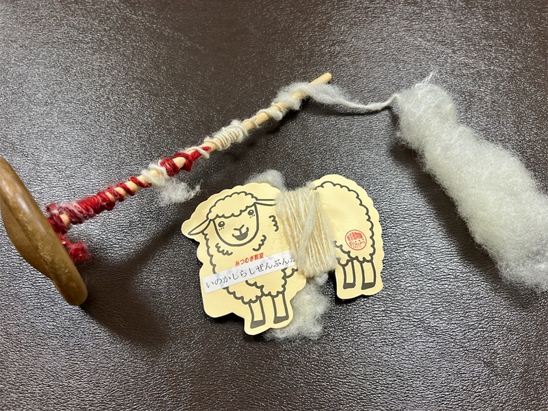 飼育しているヒツジから刈り取った毛を使って、毛糸をつくってみましょう。できた毛糸はお持ち帰りいただけます。