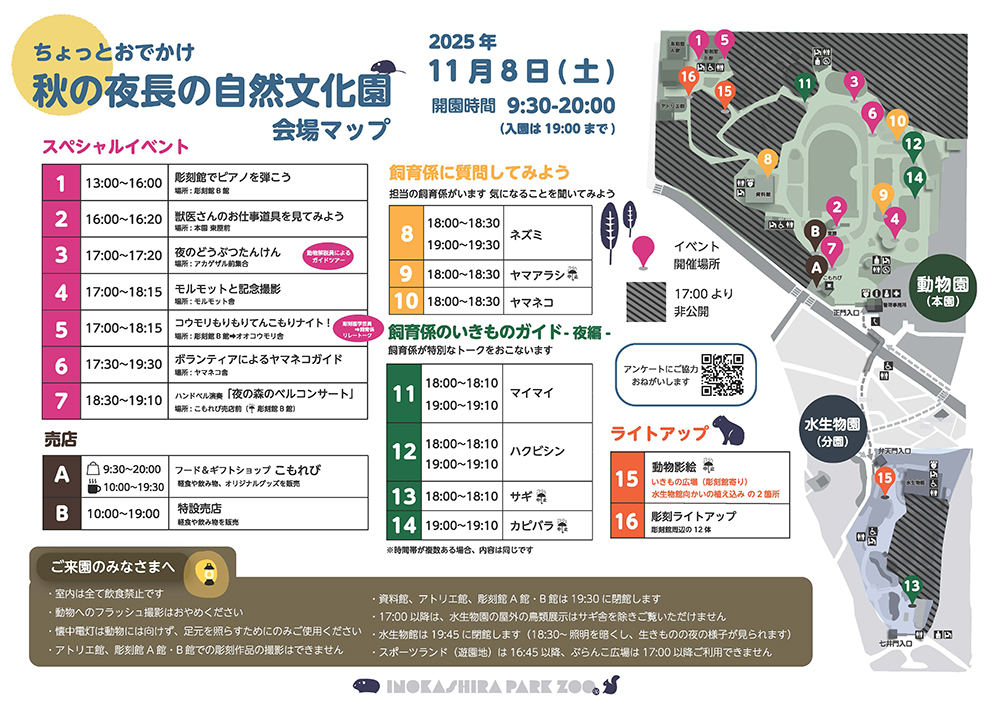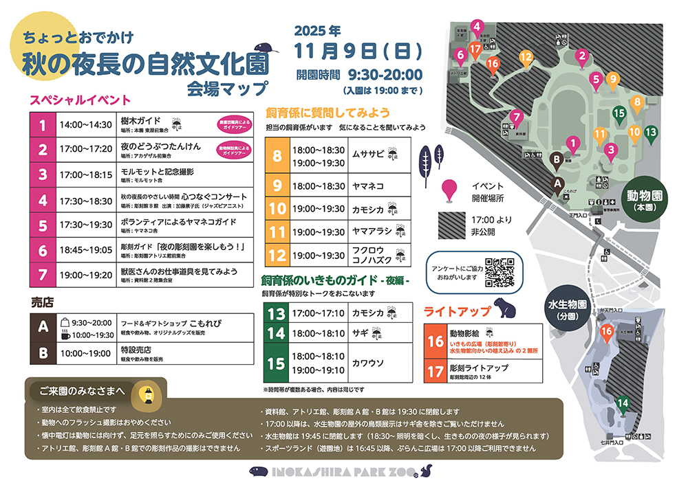 (2025年11月03日:「夜の森のベルコンサート」の場所を追記、「コウモリもりもりてんこもりナイト!」を追記)