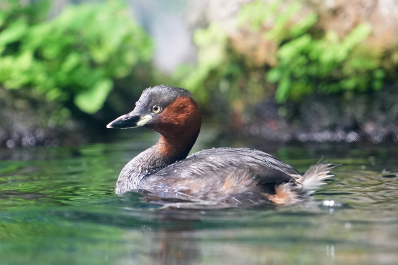 | 池の中に魚用トラップを仕掛けるようす | カイツブリ |