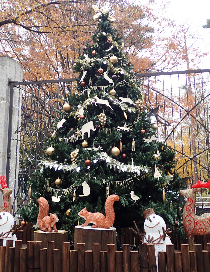 ハロウィンが終わると街はすっかりクリスマスモード。井の頭自然文化園も少し遅れましたが、正門前に大きなクリスマスツリーを設置しました。