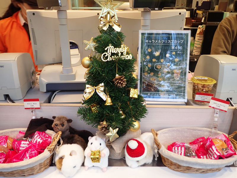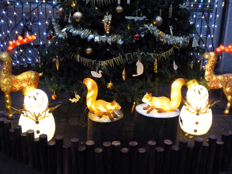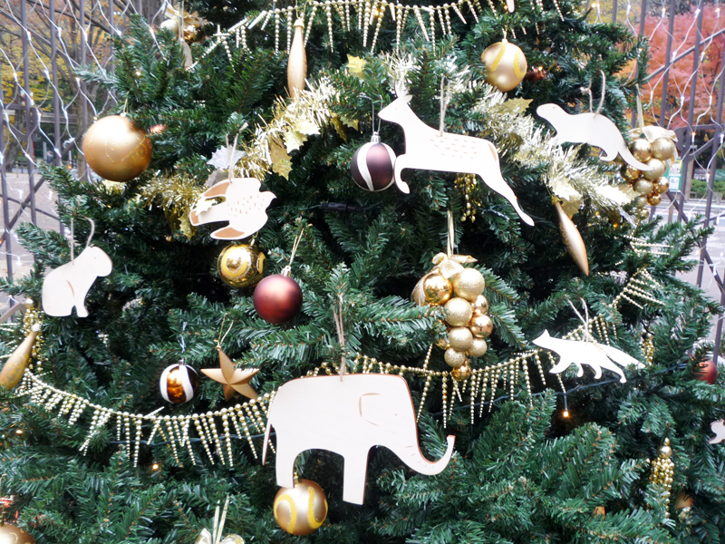 オーナメント(飾り)も文化園オリジナルのかわいらいしい動物たち。15時30分ころからはイルミネーションも点灯し、さらにいい雰囲気に光を放っています。