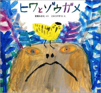 安東みきえさん作・ミロコマチコさん絵の『ヒワとゾウガメ』(校正出版社)の原画を展示。ミロコマチコさんの絵本やグッズもご紹介します。