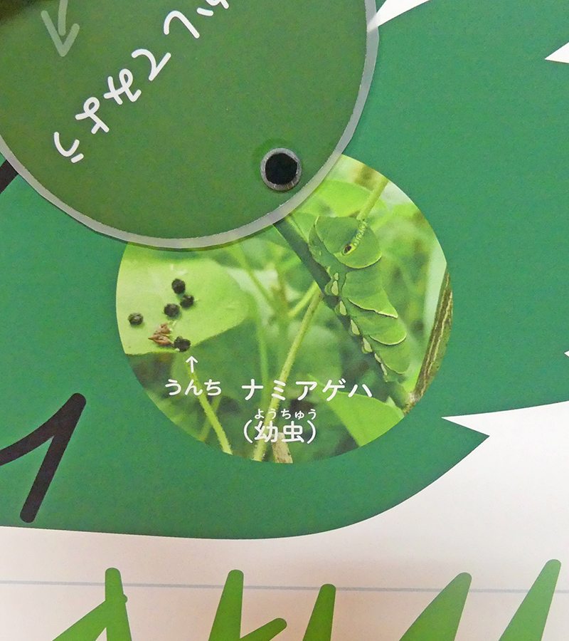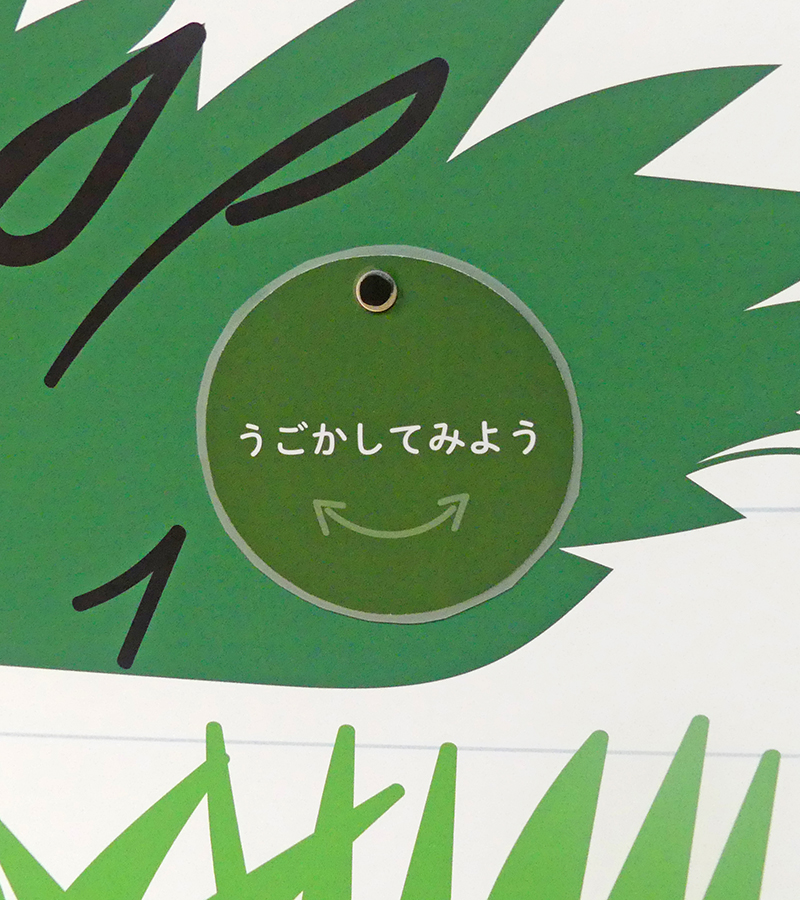 展示では生きもの探しにでかけるときの服装や注意点、生きものがどんなところにいるのかなど探すときのヒントをご紹介しています。展示の中にあるしかけを動かすと、それぞれの環境にくらす生きものが写真であらわれます。ほかにも参考図書コーナーを設け、夏の生きもの探しに役立ちそうな本をそろえています。