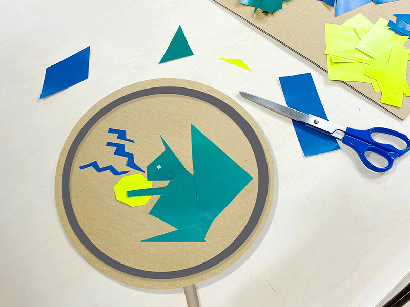 大型パネルやピクトサイン、楽しい学びのための教材。道具を使って、いろいろなモノを作るのも仕事だよ。