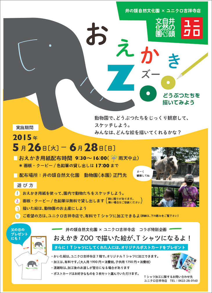5/26-6/28 おえかきZOO──どうぶつたちを描いてみよう(ユニクロ吉祥寺店コラボ企画)