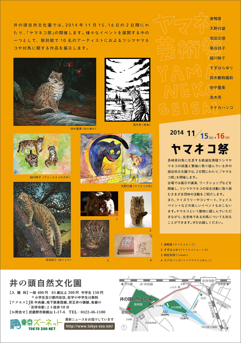 井の頭自然文化園では、2014年10月28日から彫刻館B館で「ヤマネコ芸術祭」を開催中! 会期を延長し、
