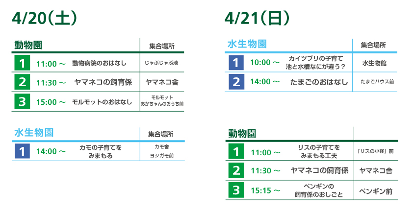 ※イベントは主に「飼育の日」の前後の土曜日・日曜日に実施します。