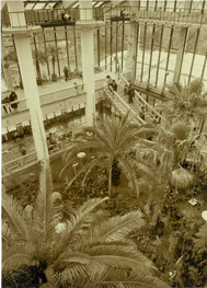 熱帯鳥温室は1962年にオープンしました。ガラス張りの温室としては、設計・デザイン・規模とも当時としては最高水準のもので、そこに鳥類を放す発想はこれまでにないものでした。現在は約150種の熱帯植物が繁茂するなかで、カンムリエボシドリ、フサホロホロチョウのほか、オウギバト、トキ類、キジ類など17種を展示しています。