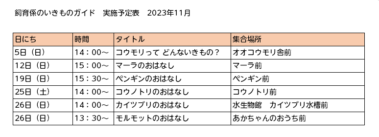 ※動物の体調管理等の都合により、中止・変更となる場合があります。