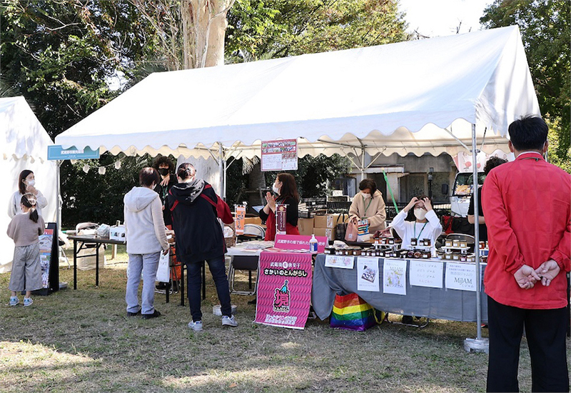 地元のお店が文化園に集まります! 武蔵野市発のおみやげブランド「むさしのプレミアム」認定商品をはじめ、ヤマネコ米を使用したビールを販売するキッチンカーや三鷹の森ジブリ美術館のどんぐりカステラと雑貨など、小さいお子さまから大人の方々までお楽しみいただけます。