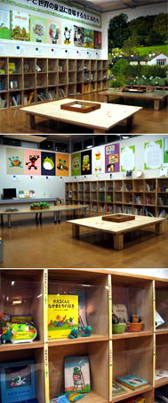 会場となっている絵本コーナーでは、「けろっこデメタン」などのアニメーションやミュージカル映像、カエルが出てくる絵本も見られますので、ゆっくりとお楽しみください。