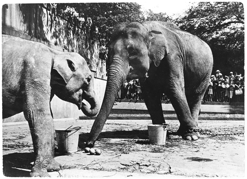 ゾウを見たい子どもたちによるさまざまな運動が実り、上野動物園にインディラとはな子という2頭のゾウが贈られました。