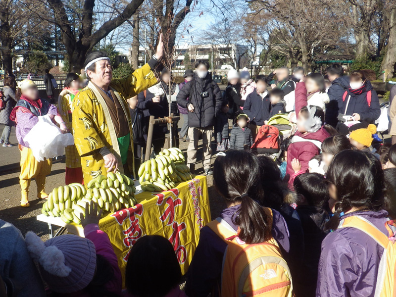 浅草雑芸団の方々をお招きし、お正月パレードや福俵、バナナの叩き売りなどで年の初めをにぎやかにお迎えします。