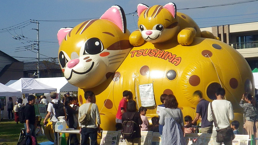 対馬市からエアドームがやってきます!ふわふわのヤマネコを体感してください。