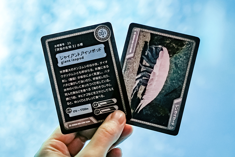 シンカイカードには、水族園で展示されている「深海でくらす生き物」や「深海に移動することが知られている生き物」が紹介されています。