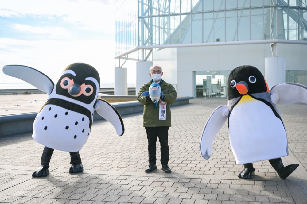 オウサマペンギンの「オーちゃん」とフンボルトペンギンの「フーちゃん」が、「空の広場」でお出迎え!皆様に新年のご挨拶をします。園長もサプライズで登場するかも!?