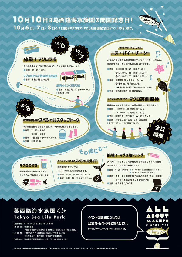 マグロをテーマにした開園記念日イベント「All About MAGURO」を、10月6日(土)から10月8日(月・祝)の3日間おこないます。今年初めて実施する「体験! マグロラボ」など、多くのプログラムを用意しています。