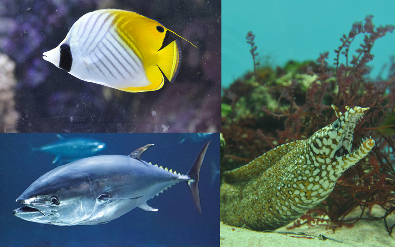 今回は魚のヒレの形やくらし方などに焦点を当てて観察します。じっと身を潜めて獲物を待つ魚もいれば、大海を泳ぎ続ける魚、狭い隙間を巧みに利用する魚などさまざまです。いろいろな魚の観察を通して、海でのくらしについて考えてみましょう!