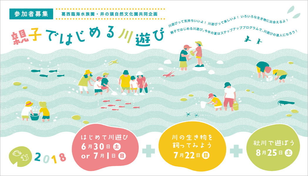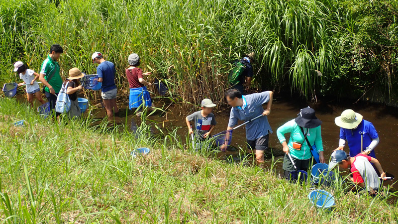 フィールドプログラム「親子ではじめる川遊び」を開催し、夏休みの川遊びや川の生き物の飼育を応援します。