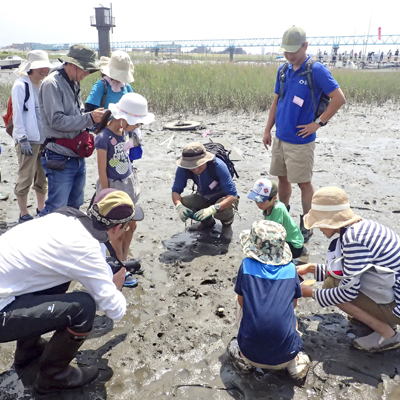 この観察会では、その調査地をたずねてトビハゼをはじめとする干潟の生き物を観察し、東京湾の干潟の現状や干潟の重要性を知っていただきます。