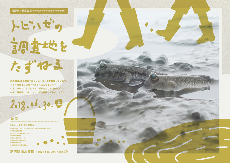 日本の北限の分布域にあたる東京湾のトビハゼは、かつての大規模な埋め立てなどにより生息干潟が減少し、数が激減しました。葛西臨海水族園では、2003年からトビハゼ調査をおこなっており、2011年からは東京湾奥部にある博物館や野鳥の観察施設などの8施設と連携し、各施設が近隣の干潟でトビハゼ調査をおこなっています。