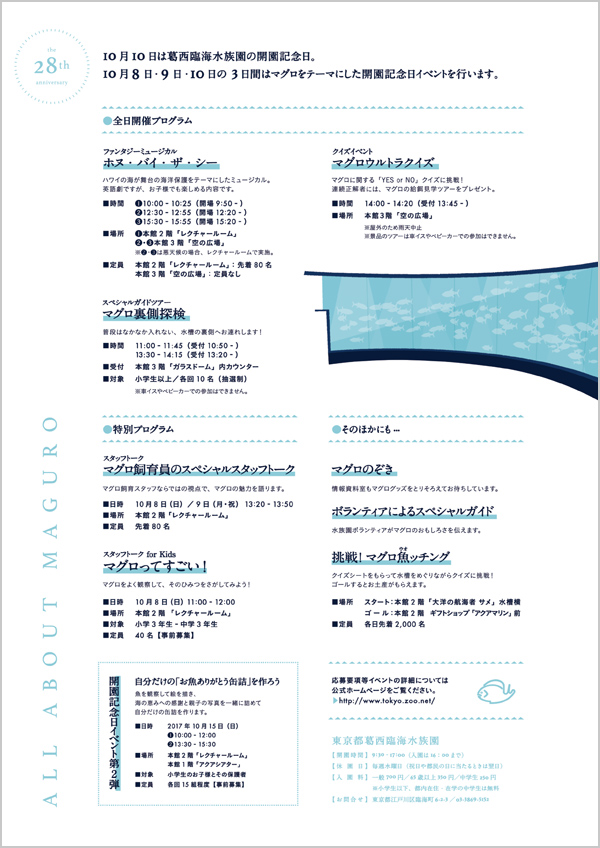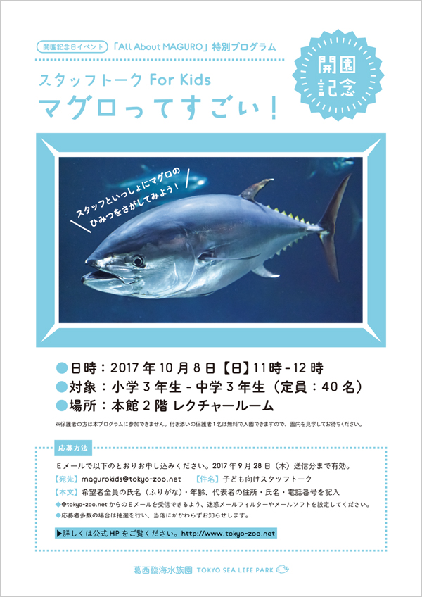 マグロをテーマにした開園記念日イベント「All About MAGURO」を、10月8日(日)から10月10日(火)の3日間おこないます。また、