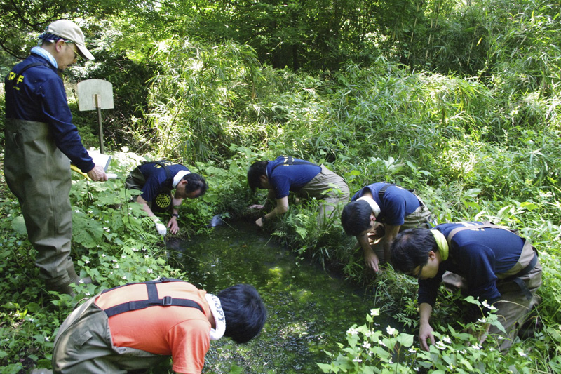 都立動物園・水族園では、多摩動物公園内の野生生物保全センターを核に、身近な水辺の生き物の保全に取り組んでいます。その取組みのひとつとして、2002年から東京都内にあるアカハライモリの生息地で産卵場所や幼生の成育場となる水場をつくり、モニタリング調査を実施するとともに、地元小学校への教育プログラムをおこなってきました。