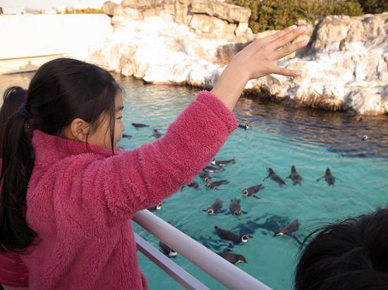 ペンギンにお年玉(えさ)をあげることも