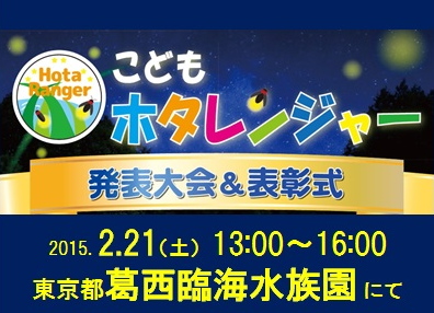 そこで、来る2015年2月21日、環境省主催の水環境保全プログラム「こどもホタレンジャー」で活動した5団体の小・中学校やNPOの方々の取り組みを発表していただく発表大会を、環境省に協力して当園でおこないます。続けて、環境大臣賞などの表彰式もおこなわれます。