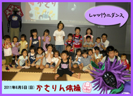 2011年度第1回「かさりん体操」は、6月5日(日)におこなわれました。おどった曲は「レッツ!ウニダンス」です。私は梅雨の季節でも明るく華やかに、赤い傘で会場に登場させていただきました。参加してくださったみなさん、どうもありがとうございました。