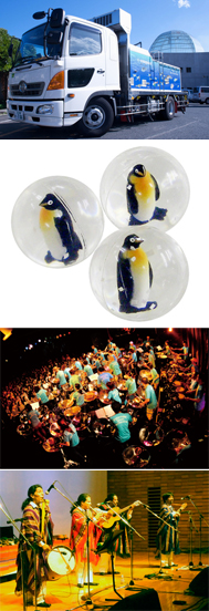 魚たちはどうやって運ばれてくるの? 水族園で活躍している車両や採集道具を展示します。ふだん見ることができない特殊なものばかり! 記念撮影もできます。