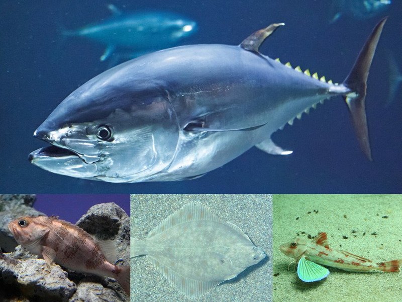 おうちで用意してもらった魚と、マグロやホウボウなど水族園が用意した魚をくらべて観察します。体の形やつくり、泳ぎなど、形態や行動が異なる魚をくらべることで、海の中で生き抜くためのさまざまな工夫を発見できます。なぜ、魚の体のつくりやしくみがこれほど多様なのかを探ります。