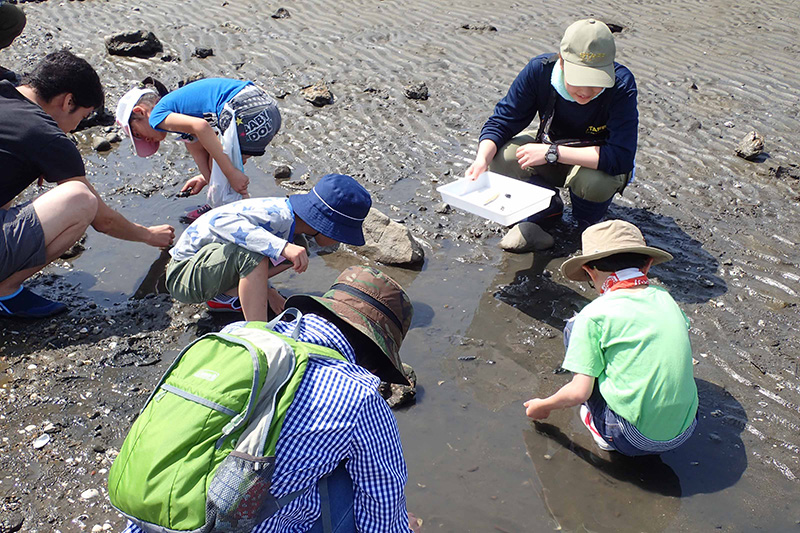 葛西臨海水族園では、身近でありながらよく知られていない「東京の海」をテーマに、実際にフィールドを歩きながら生き物を観察するプログラム